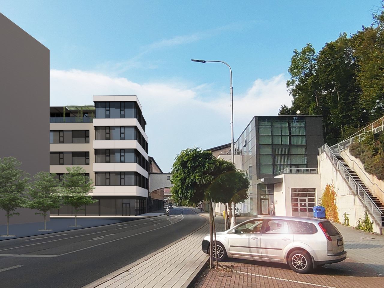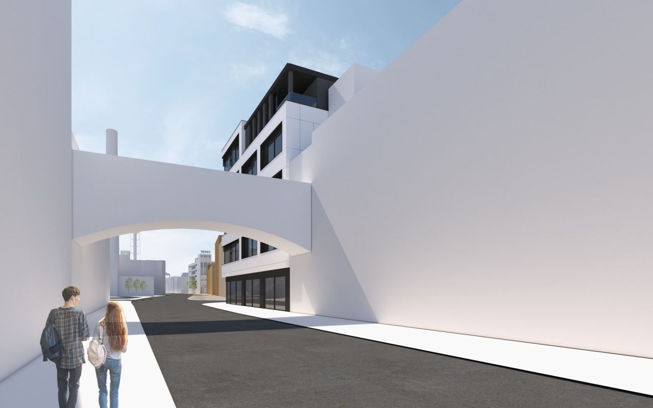 Přinášíme několik záběrů z území Nová Tepna v Náchodě. Jedná se o návrh konverze torza skeletu bývalé textilky Tepna na polyfunkční dům. Původně „nekonečný“ skelet textilní fabriky je nově nárožním domem ve výjimečné pozici. Vstupuje do území po zbourané Tepně hrdě a jako první. Skelet rozšiřujeme, nastavujeme o jedno podlaží, akcentujeme nároží, záměrně držíme vzhled fasády s velkými okny jako odkaz na typologii původní textilky.